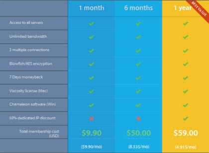 Spotflux 支持 Open加速器、PPTP 和 L2TP 协议。该服务提供了一个简单的计划。